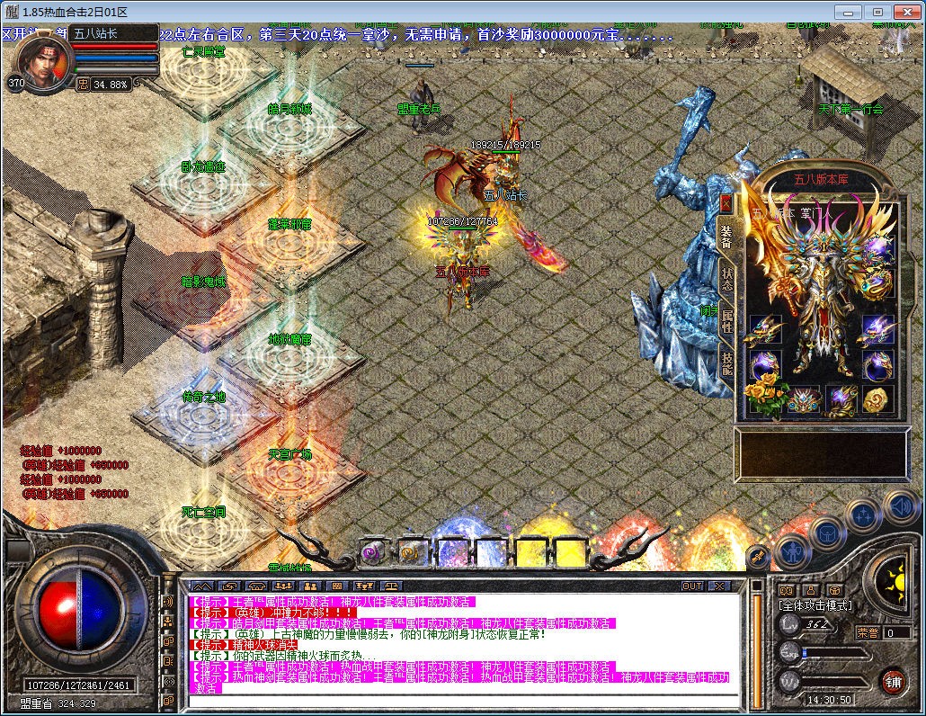 【热血合击】 新区开放第二天合区,第三天集体攻沙,奖励300万元宝!