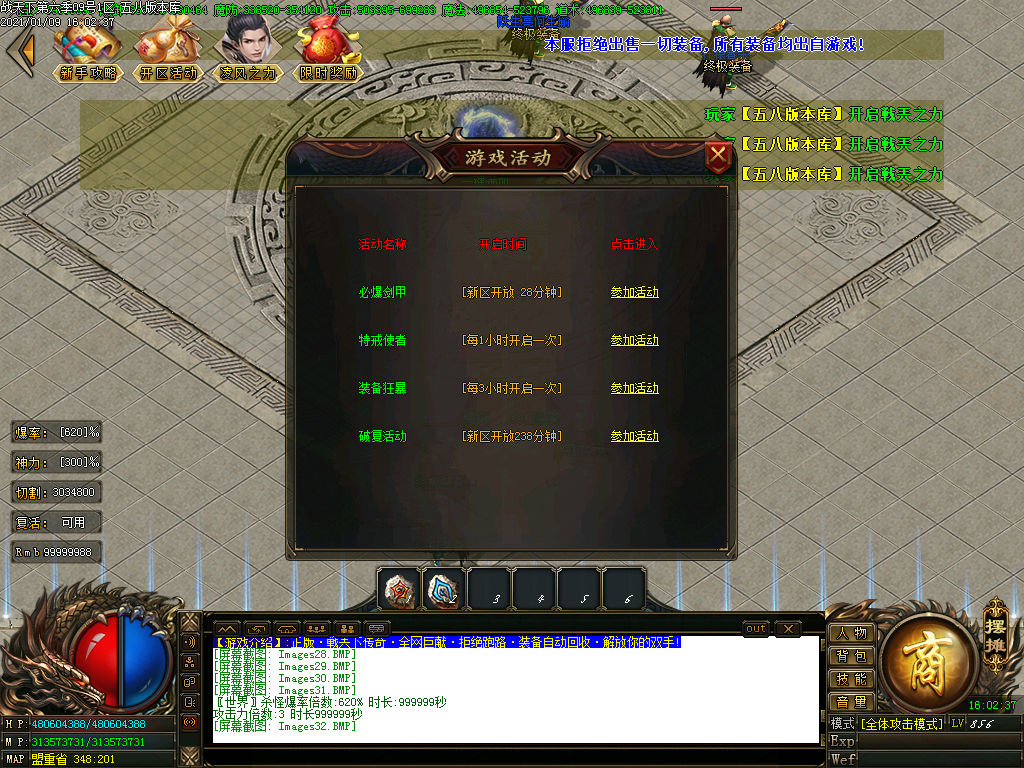 【开区时间】本服每天五个新区,每日万米广告海量宣传,保证区区人气火爆!