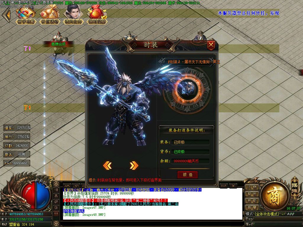 【开区时间】本服每天五个新区,每日万米广告海量宣传,保证区区人气火爆
