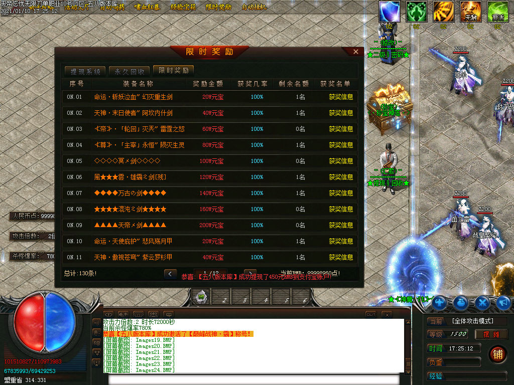 限时奖励装备有元宝奖励,元宝等于一切,郑重承诺本服无米点强制消费