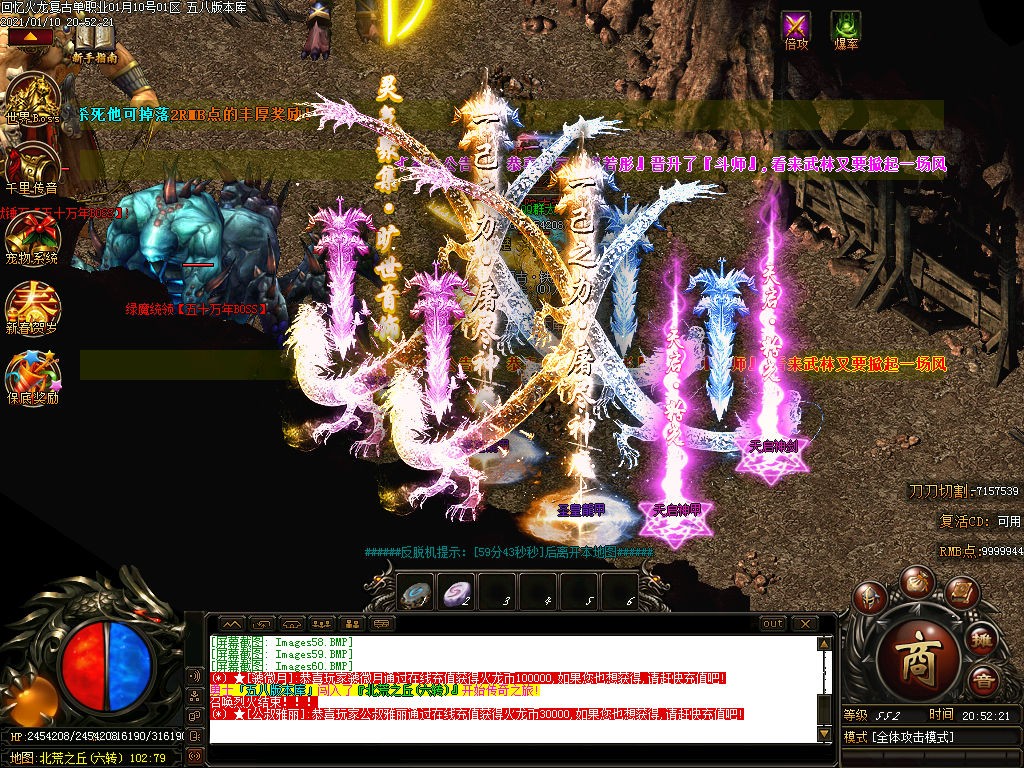 【限时奖励】:单区十万首爆打完为止 上百件永久回收 只要您敢玩 光柱无限爆。