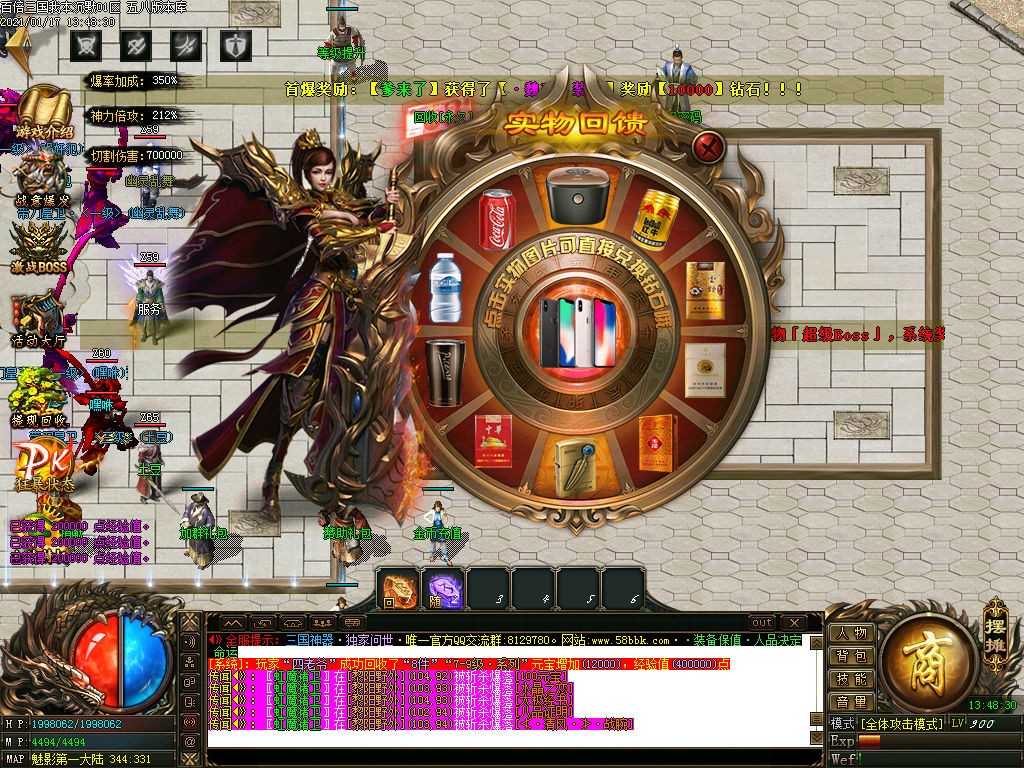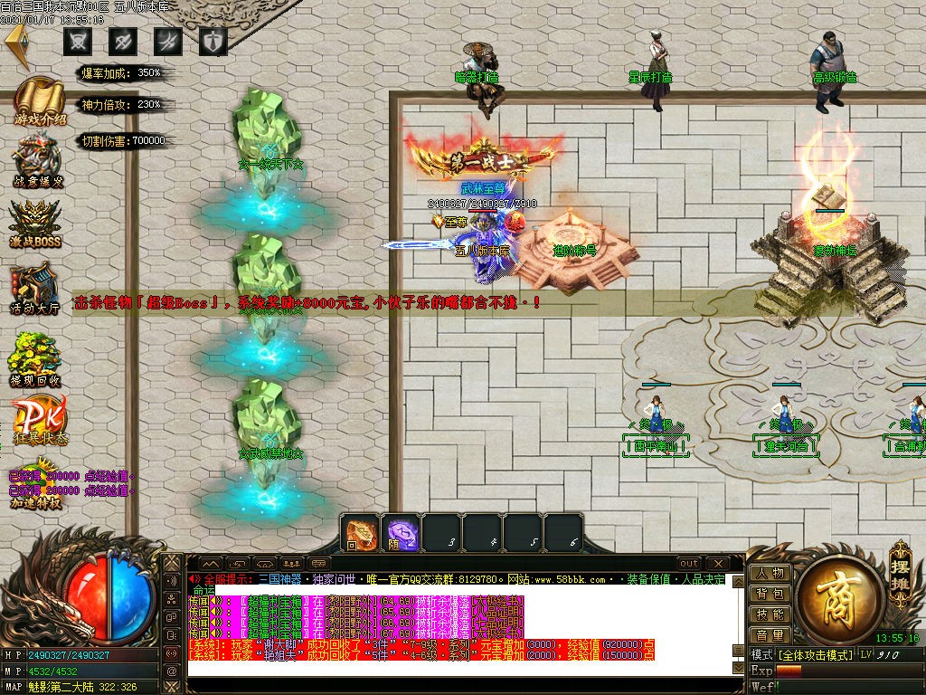沙城捐献300金币 (1=10金币) 人物防麻痹属性 1.3倍爆率 鞭尸 秒怪BUFF