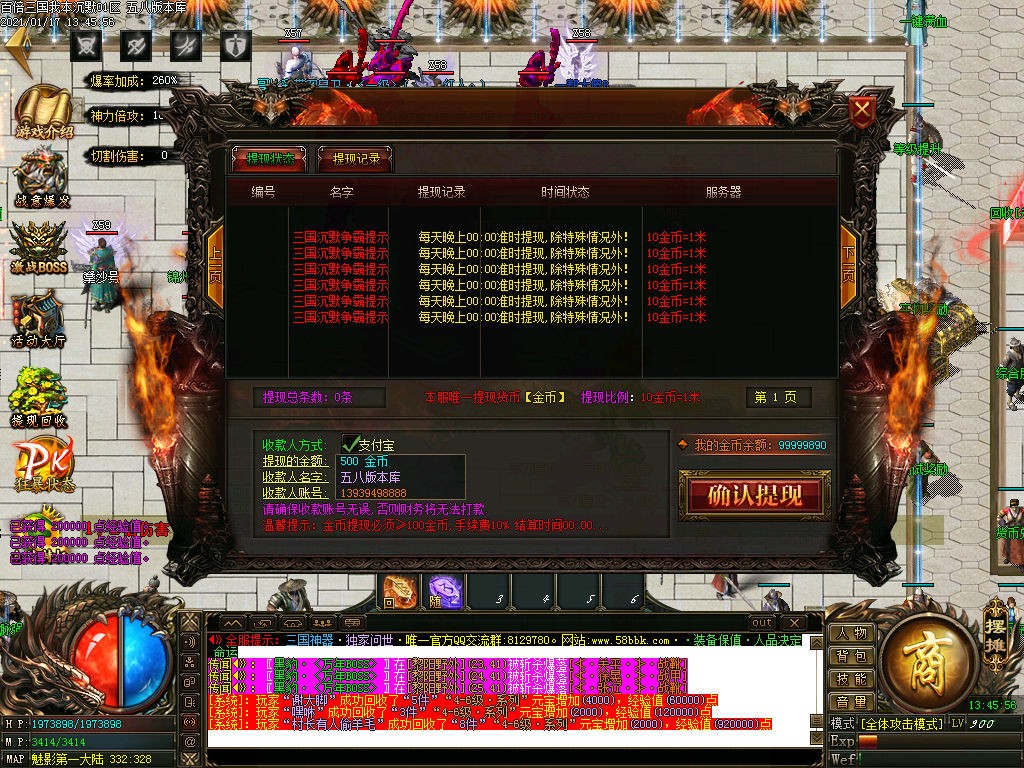 狂暴之力100金币 (1=10金币) 人物防冰冻 刀刀麻痹怪物功能 爆率 1.3倍