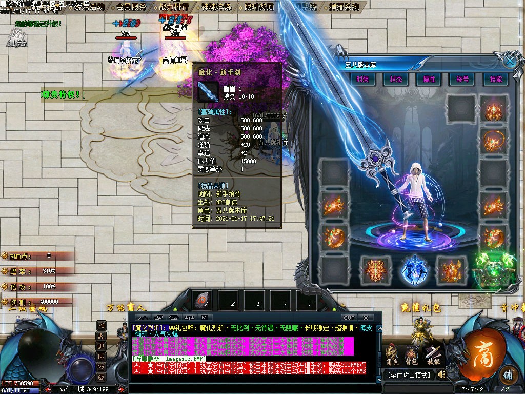 1.新人上线安全区泡点到250级,加QQ群:88888 领取专属礼包 NPC关注有奖坐标 548 610