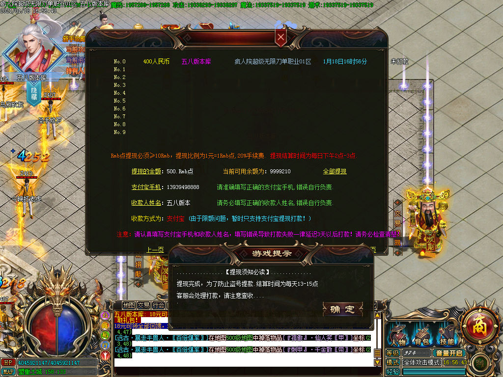 版本介绍:本服所有装备全部靠打,所有BOSS均有终极爆率,屌丝也可以逆袭。