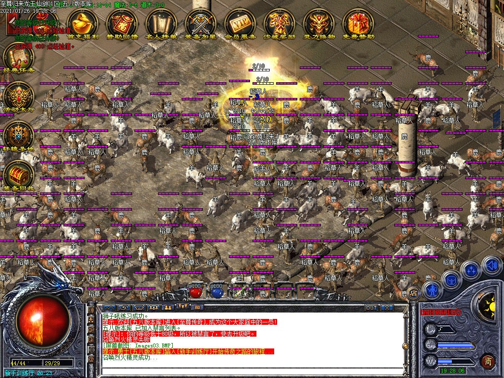 <0,21>召唤骷髅只可召唤1只,50级召唤至尊炎龙,80级召唤至尊恶龙,120级召唤洪至尊神龙!