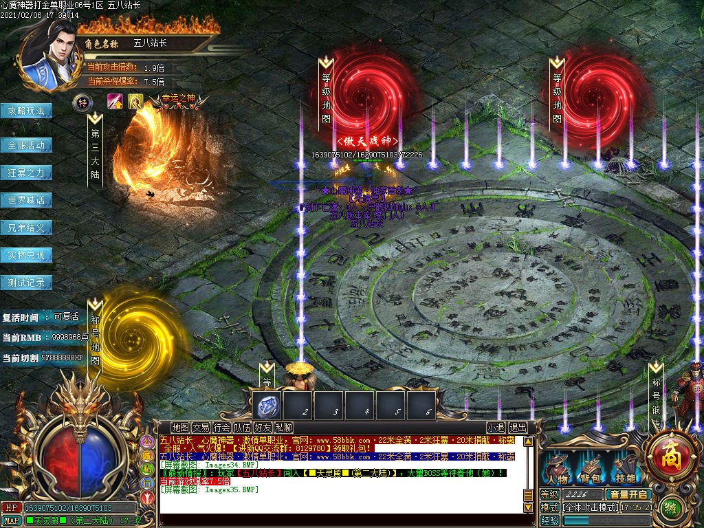【地图介绍】:所有地图都会刷新超级BOSS,装备非常好打 实物可兑换钻石 米可随时秒 活动可爆米 限时奖励无限制时间