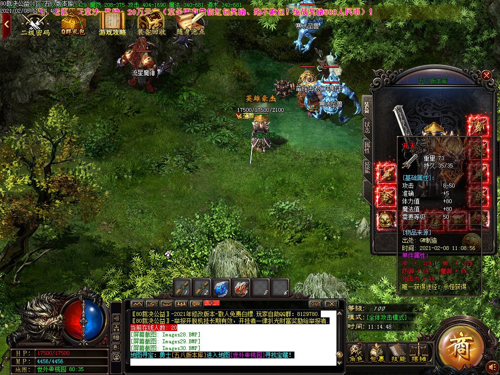 ♀.等级:前期建议玩家双开,一个号砍猪。一个号打装备(可以获得首暴奖励)请一定加QQ群五八·版本库获取群礼包兑换码,开启群礼包即可获得[1.5倍]随身泡点