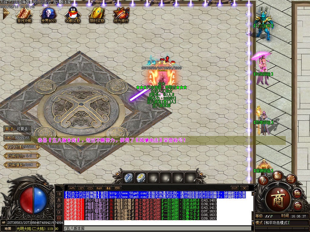 【版本说明】先升转生、还有勋章、称号。前面打不过BOSS召唤灵宠来抗怪。《灵宠是上线送的)