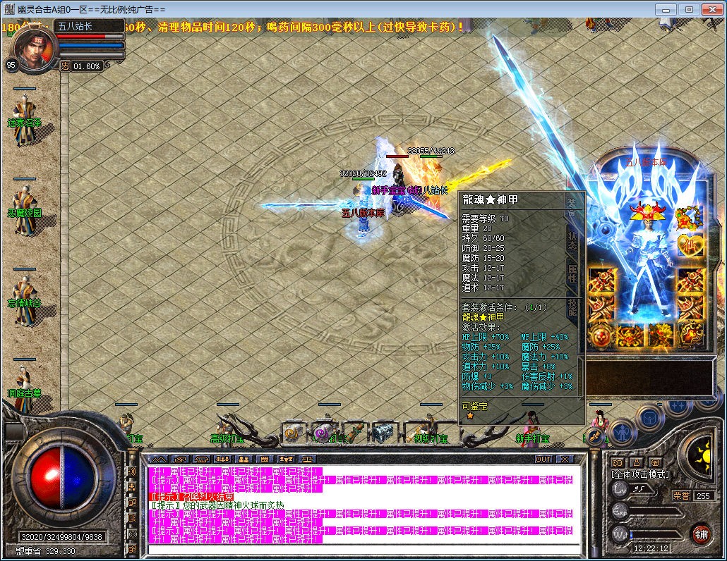 2.(充值135米套餐)元宝充值100米领取2套满回馈去庄园合成1套终极四格,金币充值35米沙城捐献+狂暴之力,建议职业推荐:法战,站站,后期推荐:站站,道道