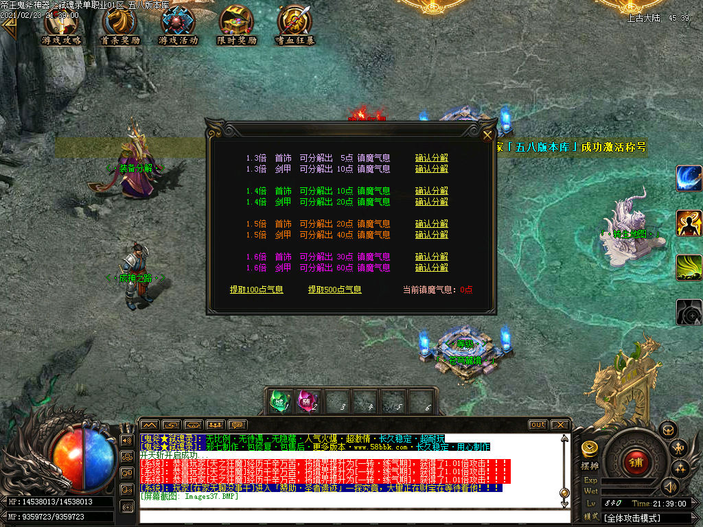 【 帝王鬼斧神器】:游戏充值比例 1=1米 装备保值回收见官网或游戏内NPC查看