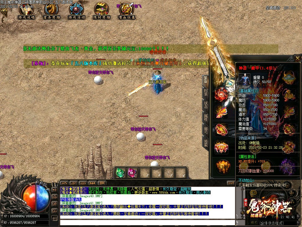 08-28【 帝王鬼斧神器】:本服小怪也可爆出高级装备,超级装备高级BOSS的爆率更高!看脸!!!!