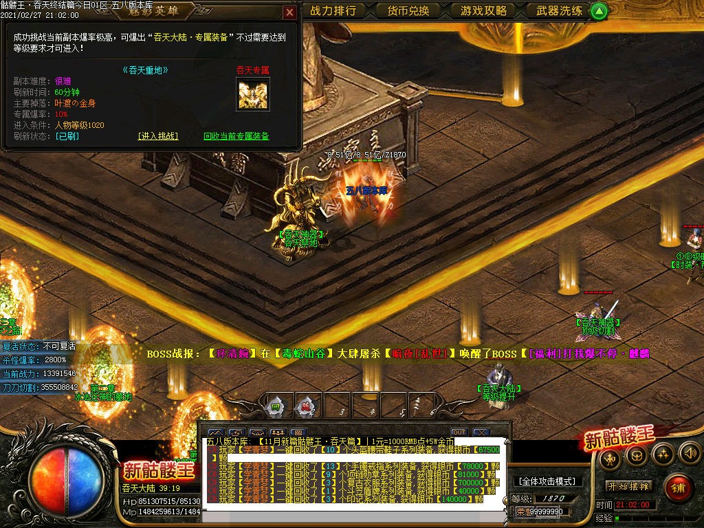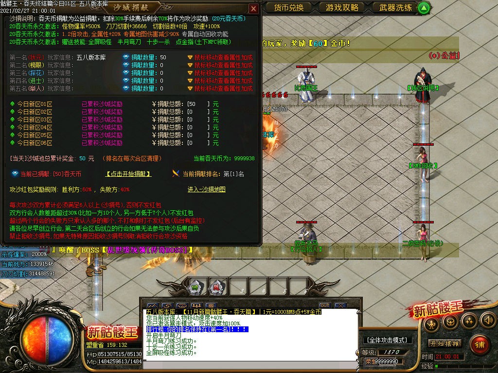 【开区时间】本服每天六个新区,每日万米广告海量宣传,保证区区人气火爆!