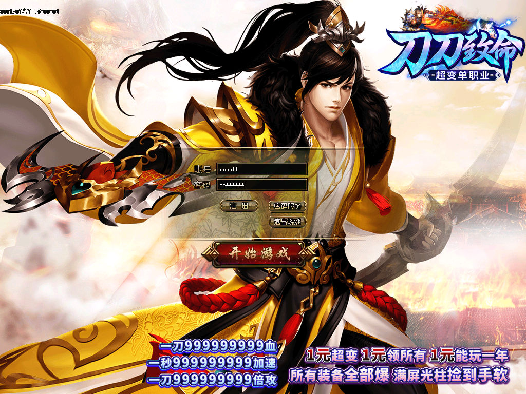 欢迎来到刀刀致命-单职业,版本长期更新,延续着一切靠打的原则,还原最真实的传奇游戏乐趣。