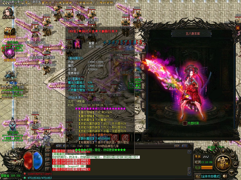 1:10000灵石,商人充值1:110001:12000,新区拿沙保底12888红包点