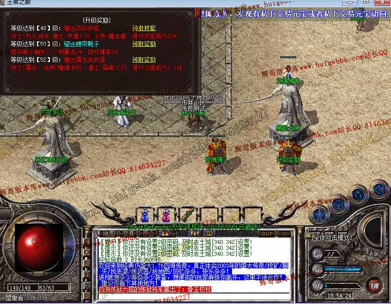 1:装备好打,等级好升,元宝回收比例高,散人真正的天堂