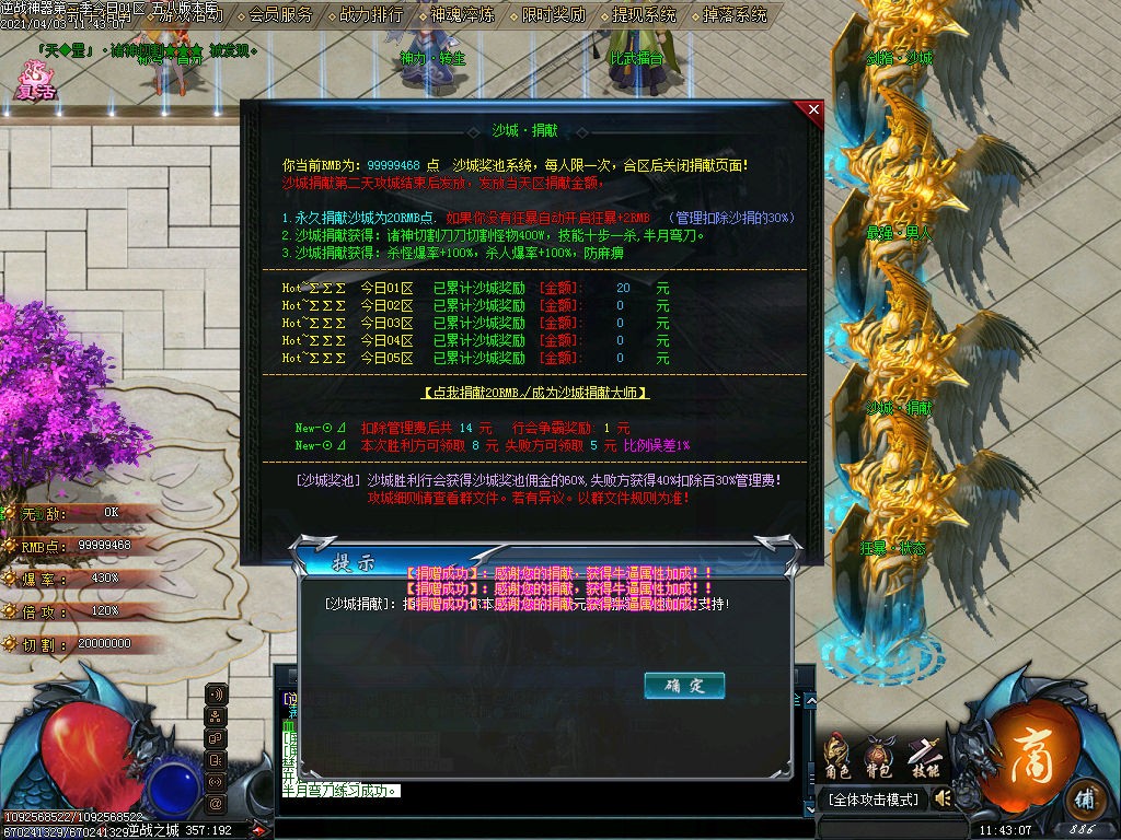 【全网最火狂爆神器】22米全满,20米捐献,2米狂暴,无隐藏,所有沙城捐献全部累积沙城奖励,自动捡物,自动回收