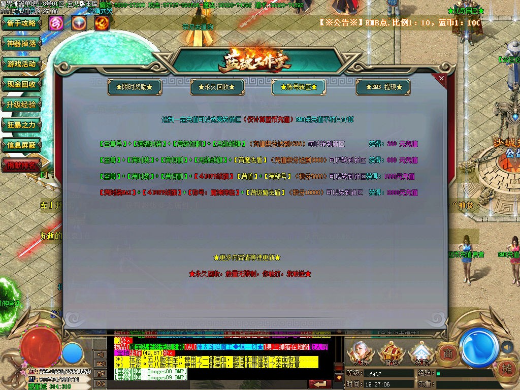 【※公告※】米点.比例1:10,蓝币1:100,元宝全靠打,无任何在线管理,请玩家谨防上当受骗。