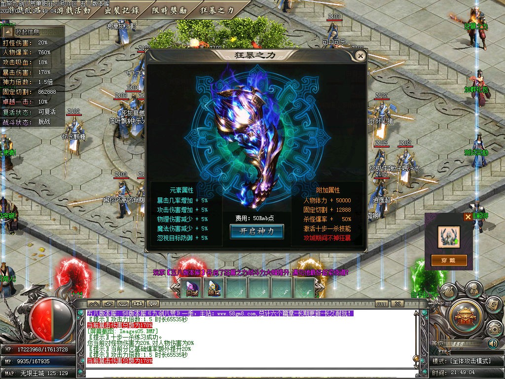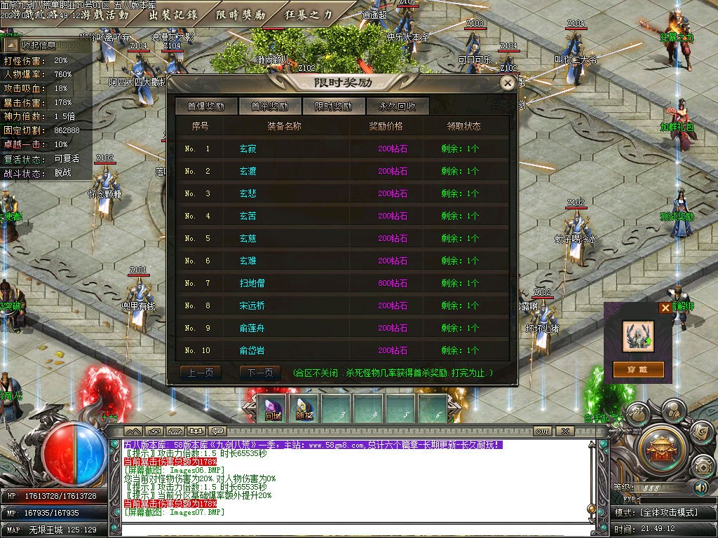 游戏提示:本服设置米限时30000+,打完为止,时间等于一切、只要有耐心,任何装备都可获得!