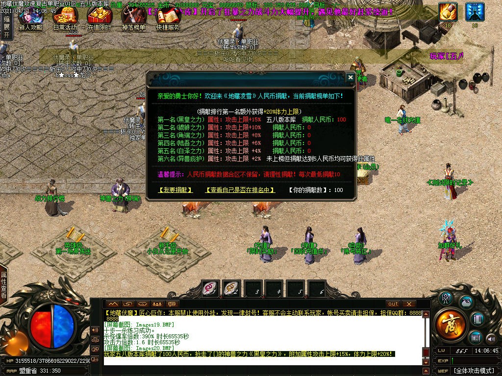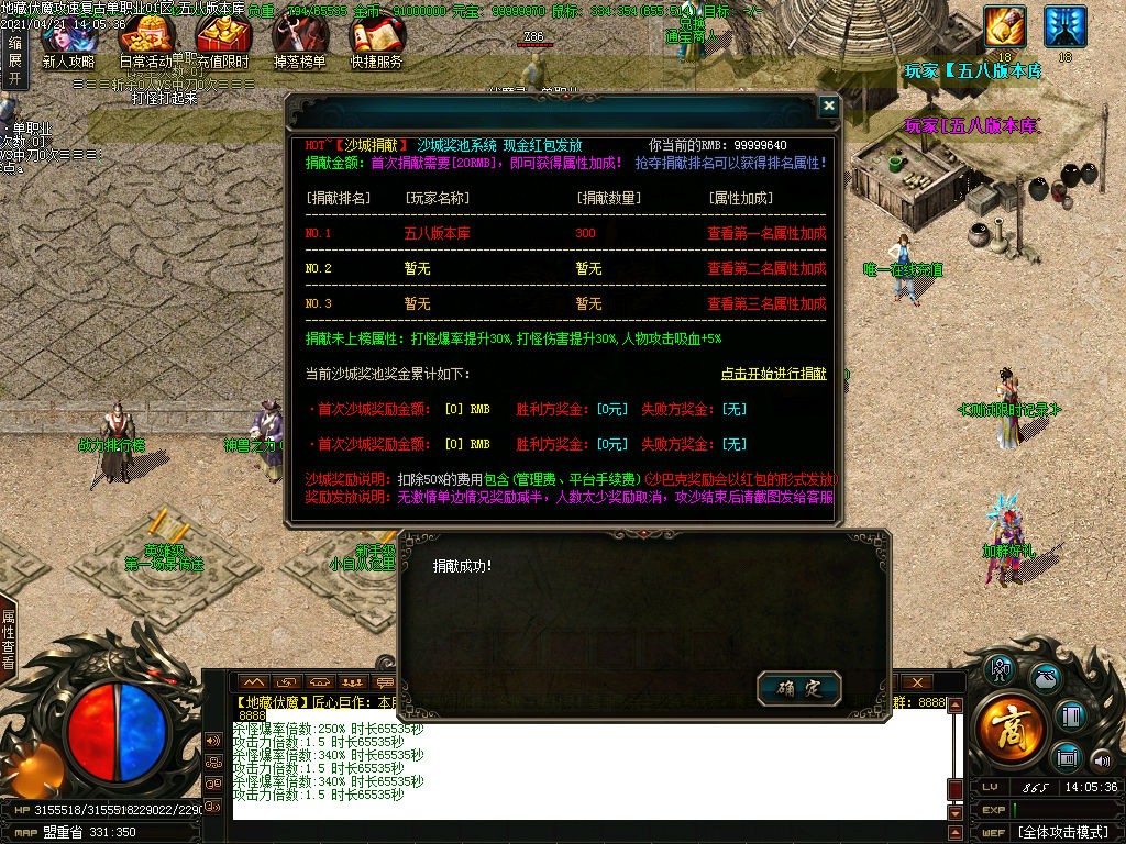 1.捐献狂暴(30米) 贵宾玩家(50米) 共80米! 土豪可多充兑换米