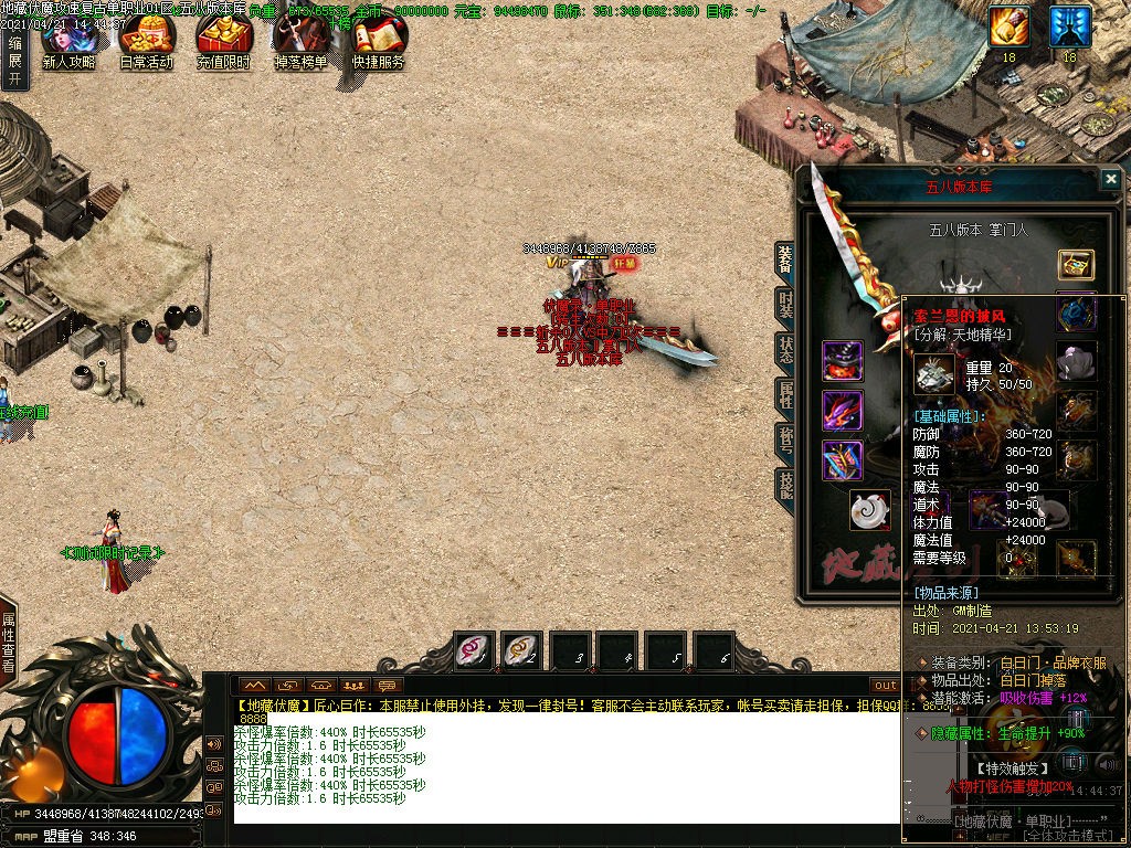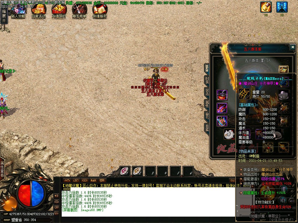 5.装备差不多就赶紧下真灵界打专属,依次打宝地图封魔-白日-苍月-魔龙