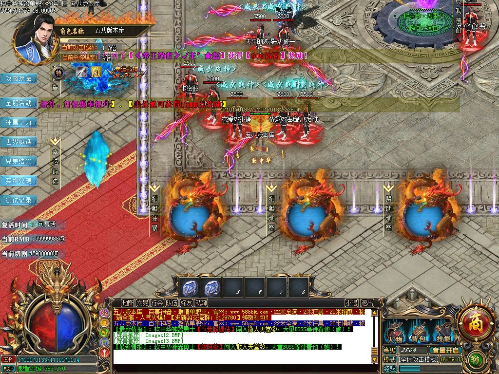 3:本服所有地图全都刷新超级BOSS.所有全爆