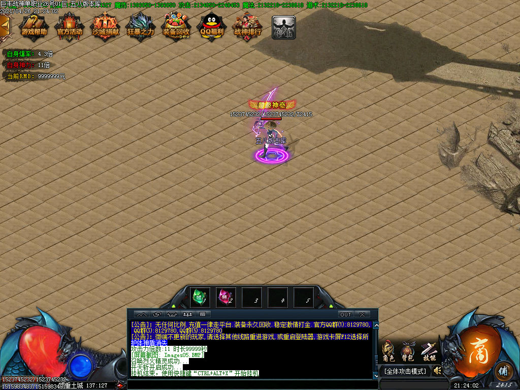 说明:本服爆率全开,装备只能靠打,合区不关闭爆率,BOSS与鞭尸必爆金米令!
