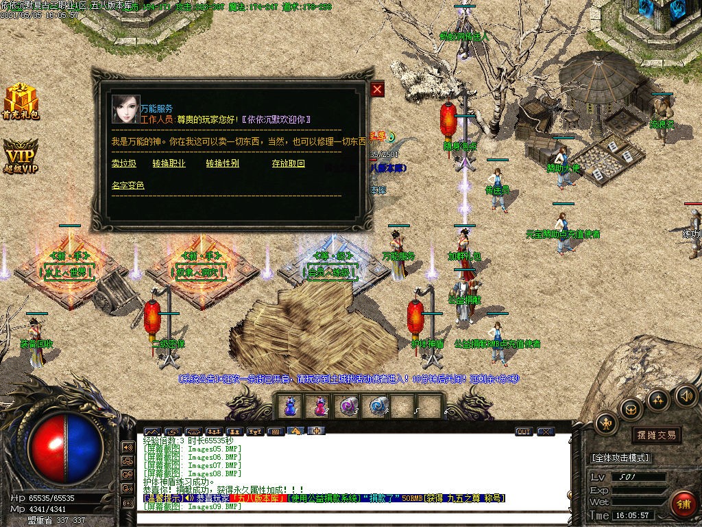 【等级系统】:封顶60级,前55级采用免费全地图泡点模式,边打装备边涨经验。后面手动升级!