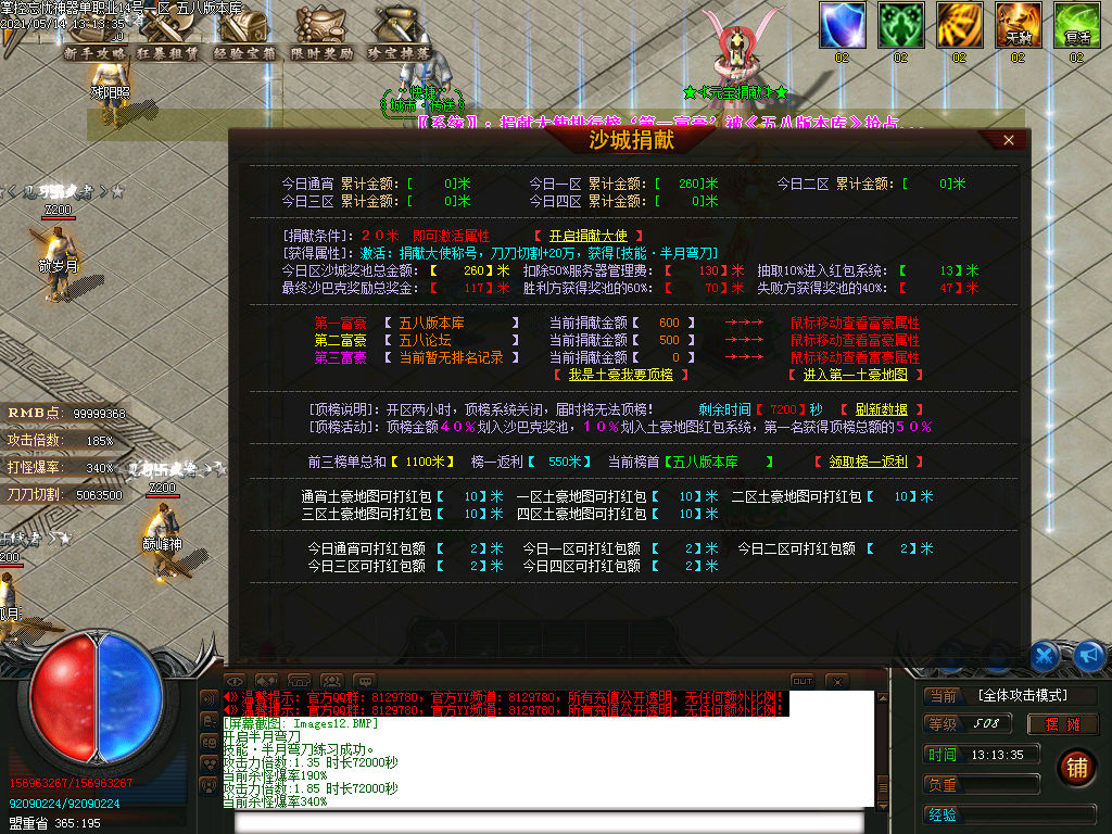 充值玩法 → 充值20米沙捐(全部进沙奖池) + 2米狂暴 + 4米掌控神力=26米