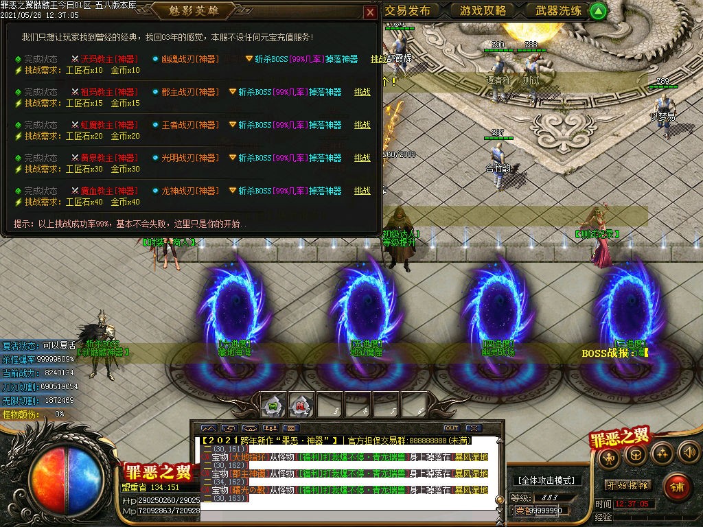 【特色地图】打造九五至尊地图,地图为四层,每层均有一个最大BOSS,必爆实物,爆率感人,详情游戏中体验! 【关于封挂】无论大小号 开挂必封号!独家封挂系统!封到你哭!