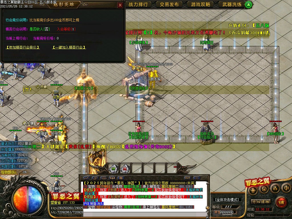【合区规则】新区开区第3天下午3点合区晚上8点拿沙,首次沙城奖励沙城捐献的全部元宝(无上限)