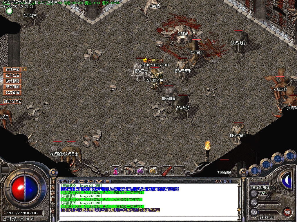 道士玩家上线开好沙城捐献.直接下地图打BOSS.道士没有打不死的怪!所谓打宝职业!42级可召唤七级神兽两只!