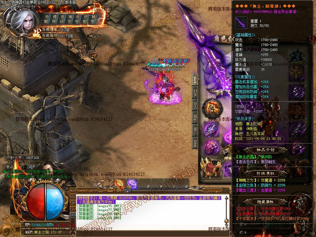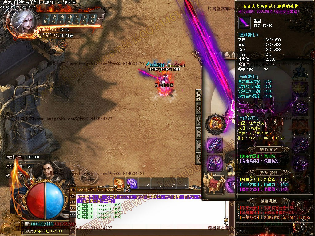 [游戏介绍]:本服所有装备附带7个档次切割属性,装备品阶越高,重铸切割属性越多,一切看脸,切割越高打怪越快