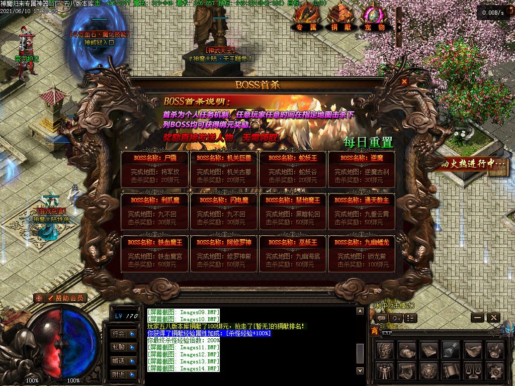 游戏介绍:人物功能连击,怒气,军衔,破魔天赋等功能无需充值等级达到就能开启!