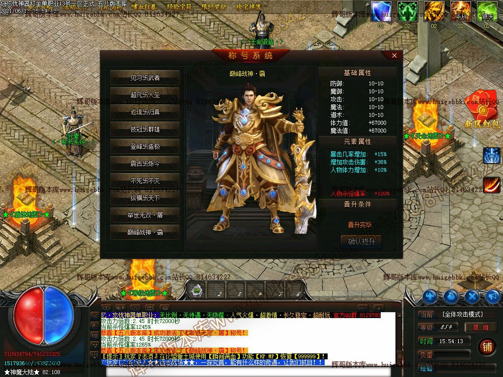 第三点:本服转生 10转满 时装8级满 消费660米 称号12级满 600左右【称号地图红怪翻倍爆率真实增加】 天命 化神满 消耗元宝 超级好升