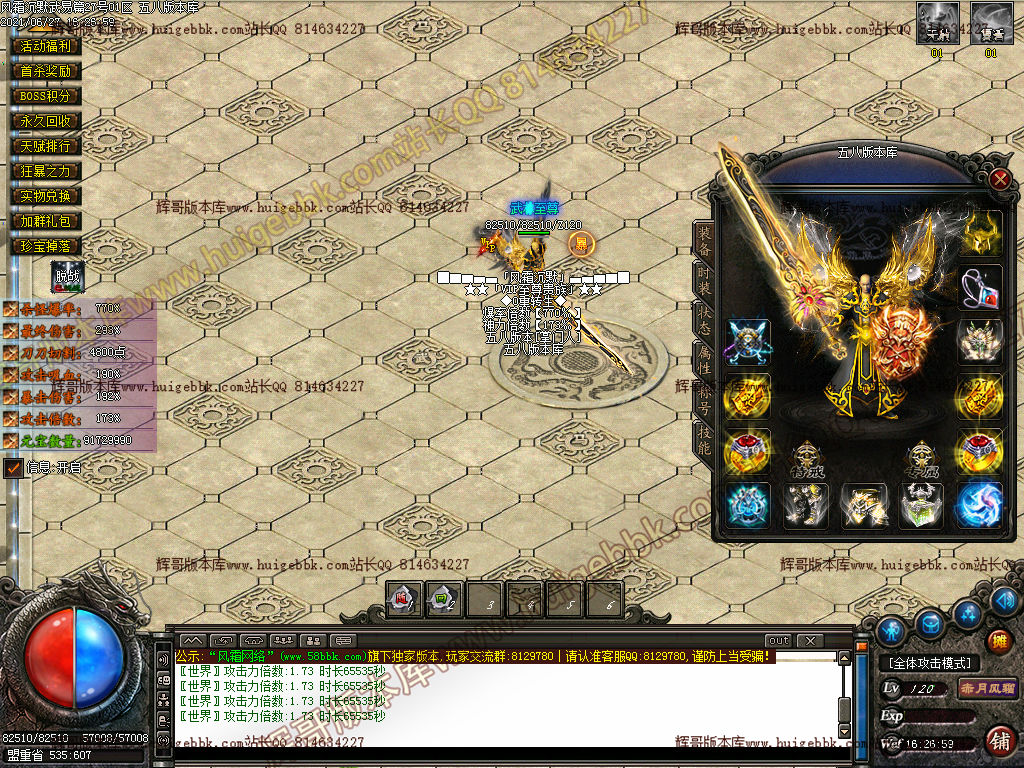 6.幸运系统:幸运15触发最高攻击,在土城上方539.597用元宝提升至+8(所需元宝很少,前期随便打打就凑够了),