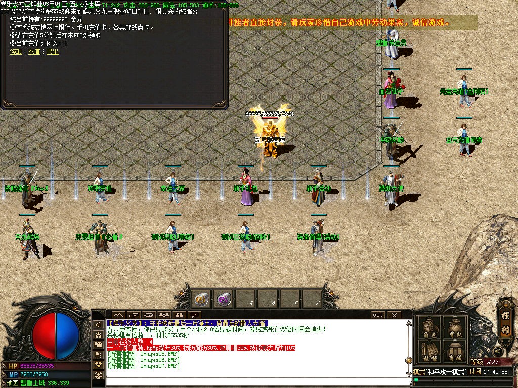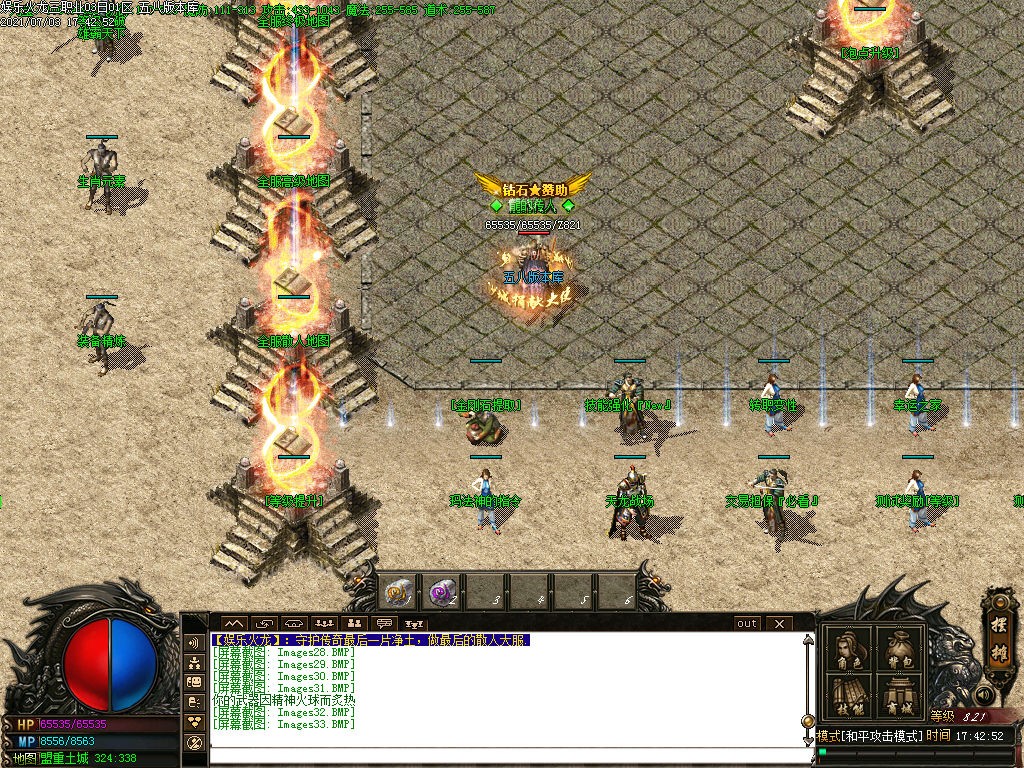 【公告】:为提高人物属性方便玩家打宝,特设置各种NPC,龙的传人,转生服务,爵位捐献,天下第一,武林盟主等。