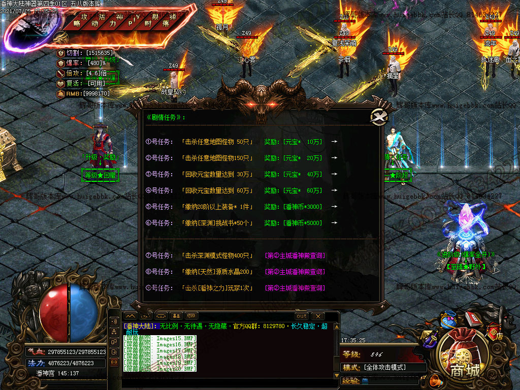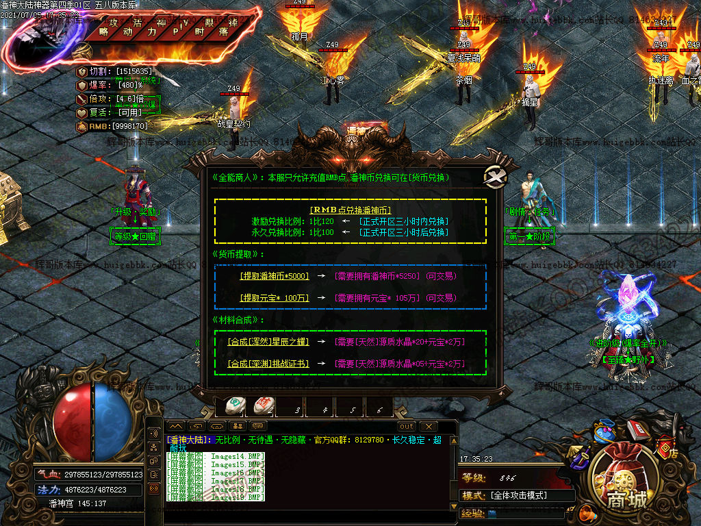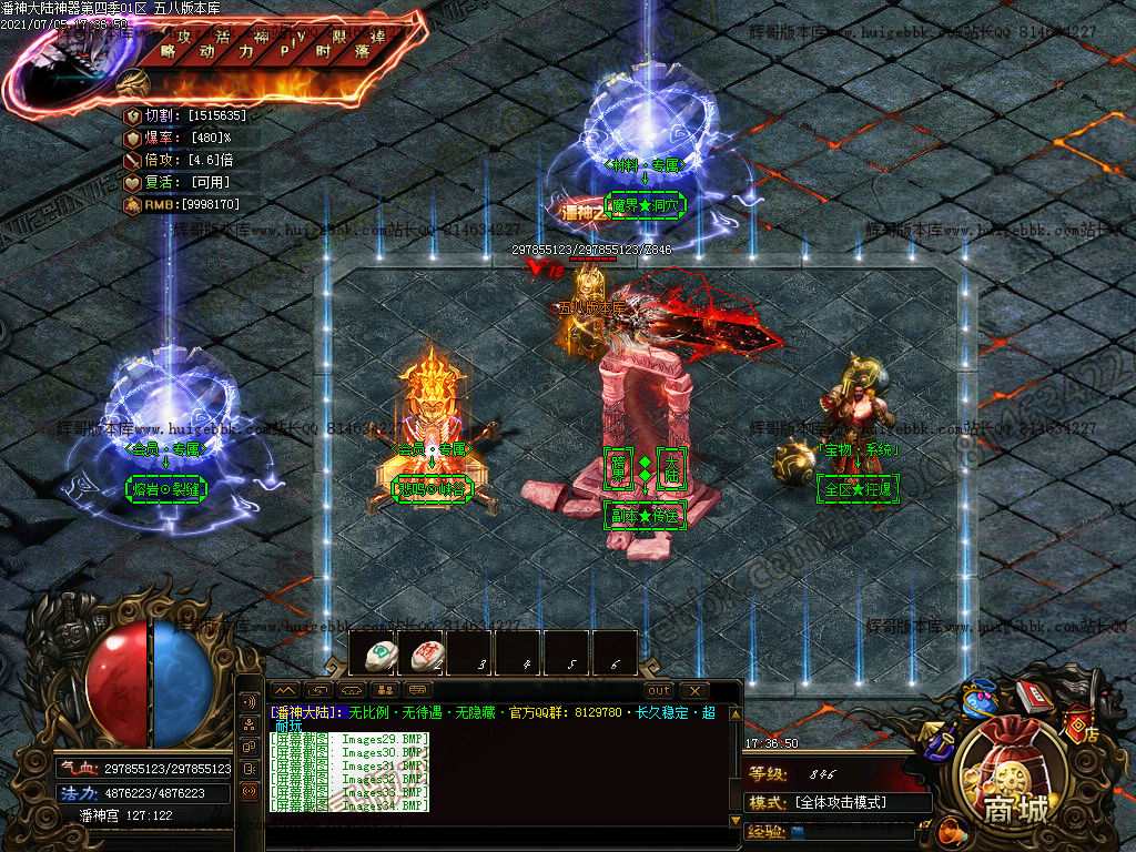 [副本所有4图]: 每图120分钟刷新龙神[特殊BOSS],全民福利,打死必爆大量潘神币及材料及装备,几率出回收件