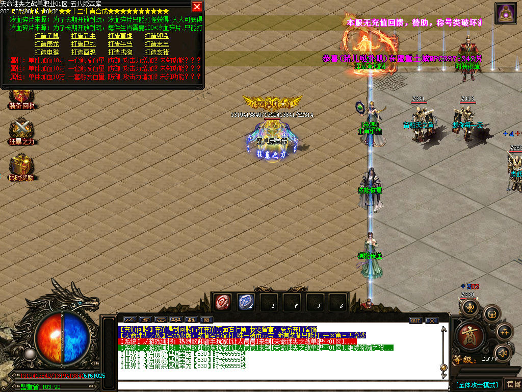 版本介绍:所有装备爆率全面提高 绝对保证合区之后的战斗力!所有装备全爆不限制 稳定白嫖2