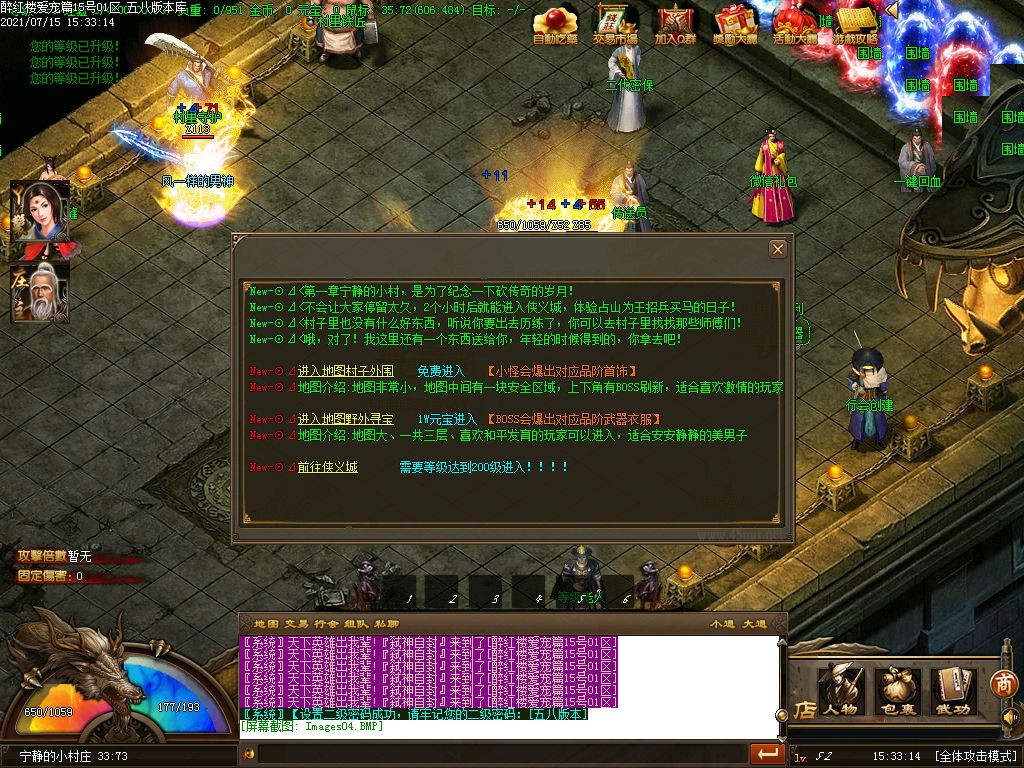 杀猫逐鹿出新村 斩妖除魔入盟重 近观绿涛汇碧海 远眺青山有苍松