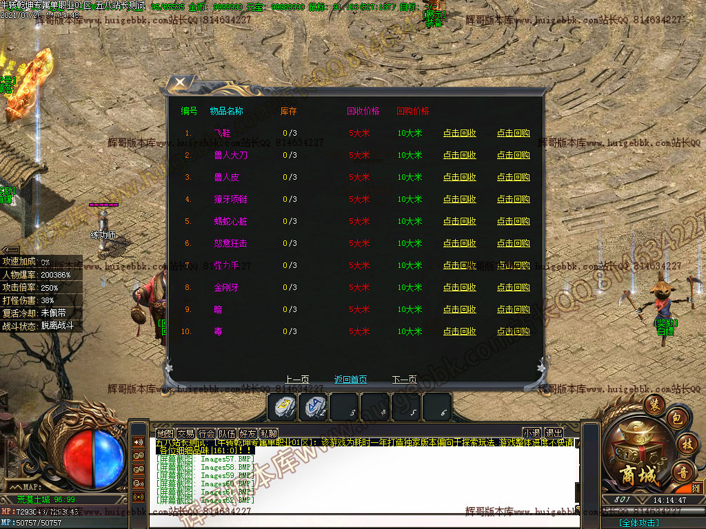 以及铜锣湾地图掉落的一套资源加成装备,加速成长,所有怪物都爆D、C级宝物,再回首栏可以3合一往高级随机合成无限制