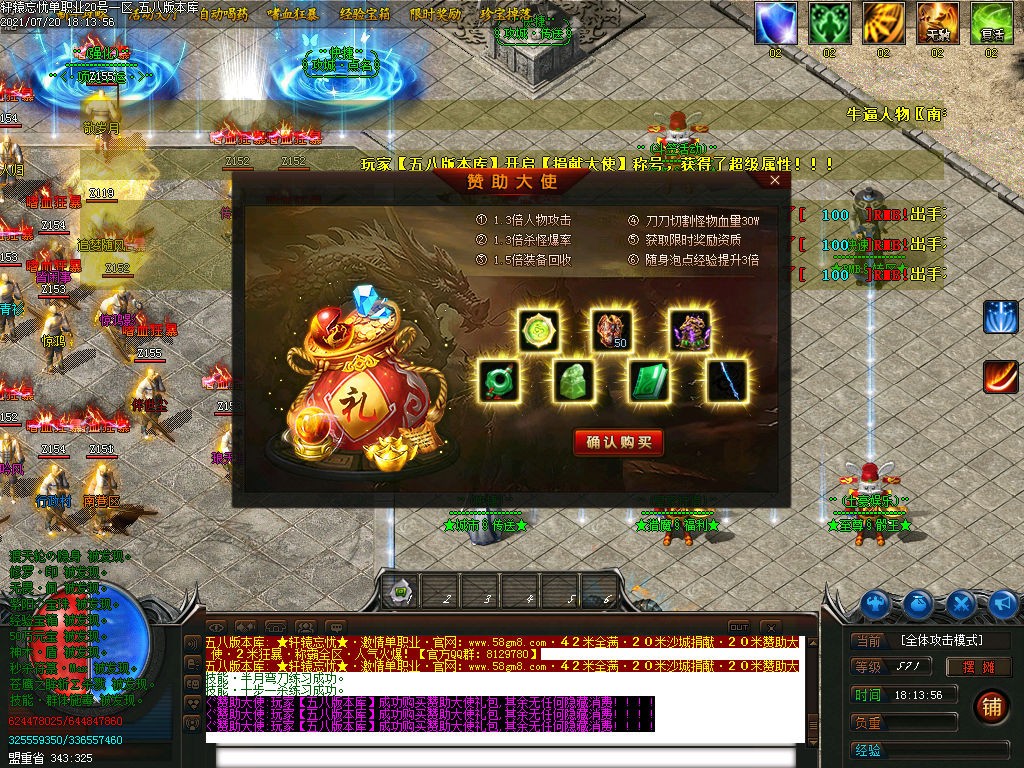 本服全满42米。 包含捐献20米 狂暴2米 礼包20米。 本服顶榜500米封顶 请各位玩家适当顶榜 切勿过头