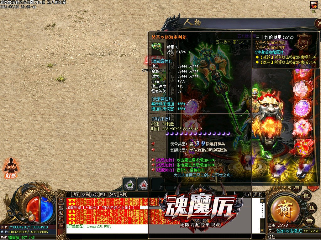 玩★必上瘾●自带攻速+255。切割.技能.暴击.-百件神器保值╲全民鞭尸╲一切靠打.◆刀刀出光柱