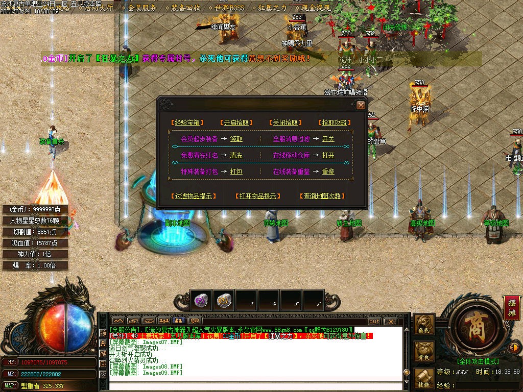 特色玩法:上线送冰冻.送自动拾取.狂暴自动回收。