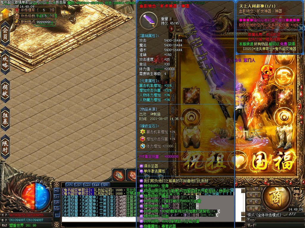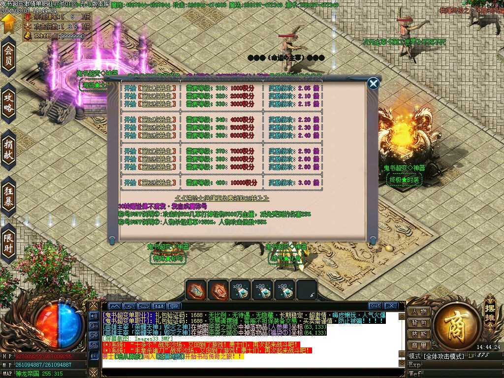 3.转生,等级,爵位都拥有终极大陆,本服活动奖励非常丰厚,记得定时参加,可爆出终极装备