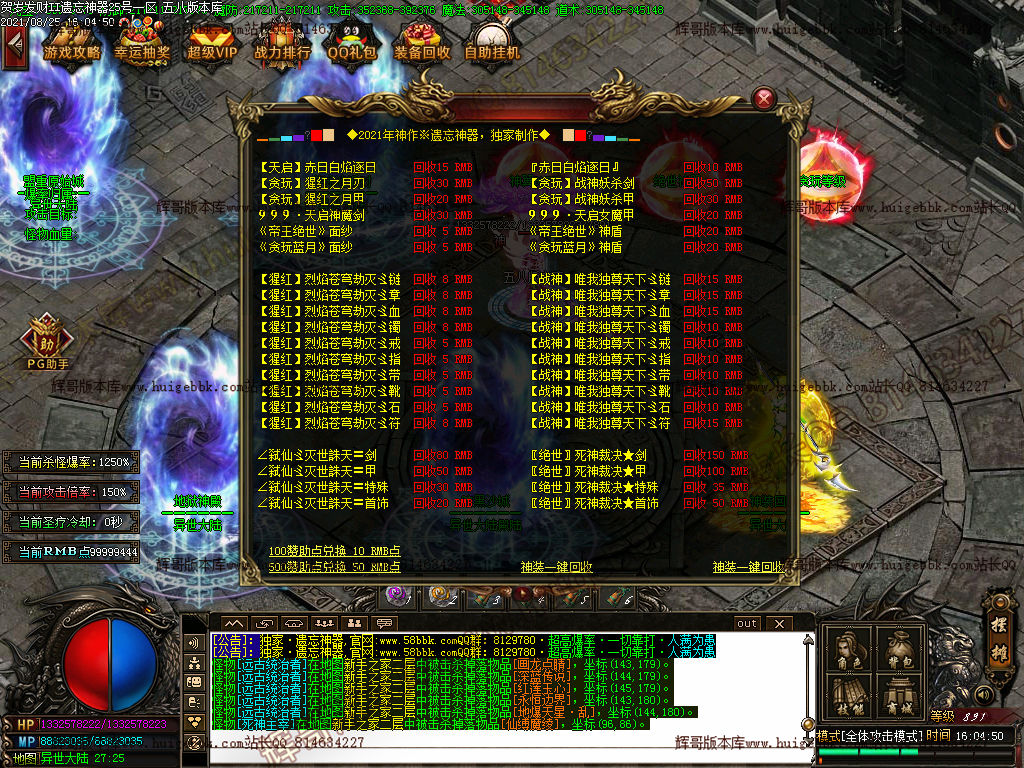 [251]公告:本服所有装备均爆,主打召唤师峡谷和异世大陆!!