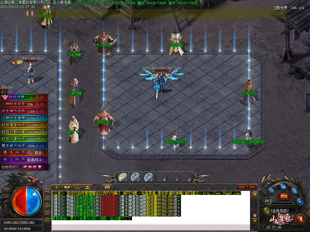 阴阳结界: ◆◆◆阴阳界主◆◆◆ -- 30分钟刷新,随机必爆中土、北阴专属装备,21转材料,必爆金盒