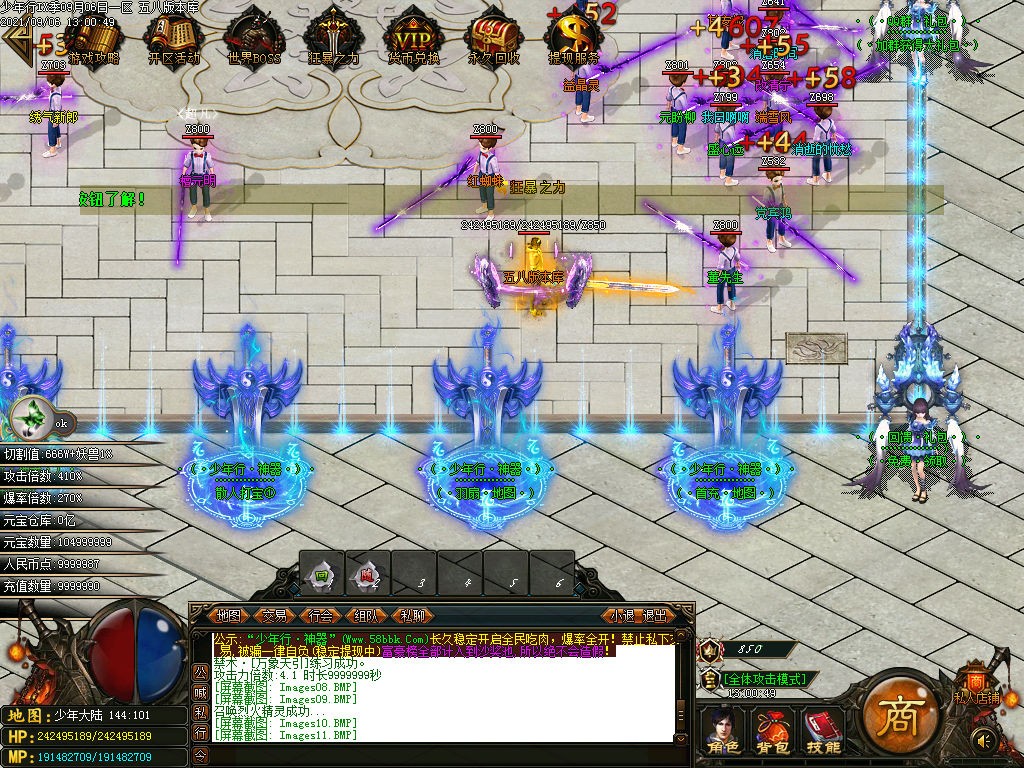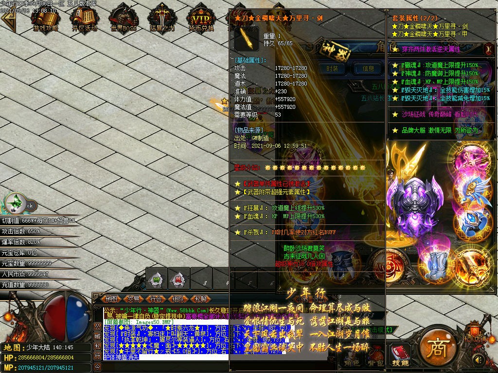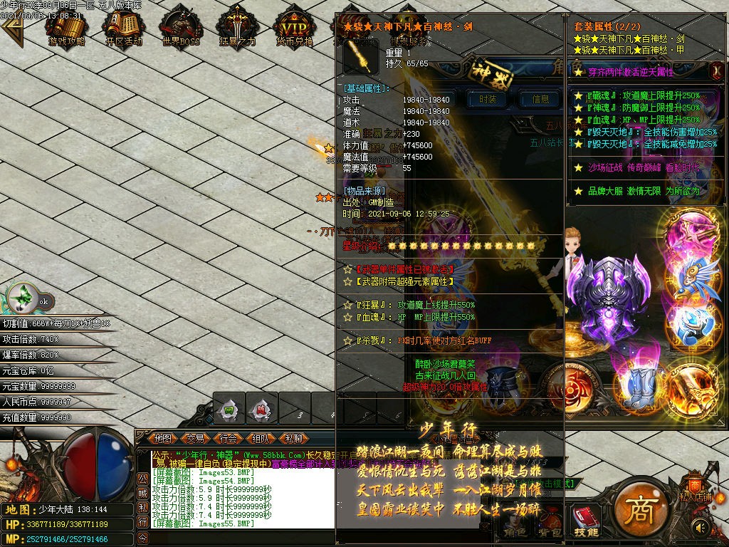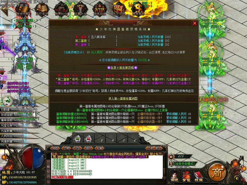 <装备介绍:本服共58套装备、5套倍攻首饰、时装15套、符文5套、特殊各18套、爆率全开新手怪都爆终极!<>