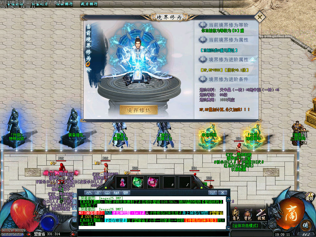 杀猫逐鹿出新村 斩妖除魔入盟重 近观绿涛汇碧海 远眺青山有苍松