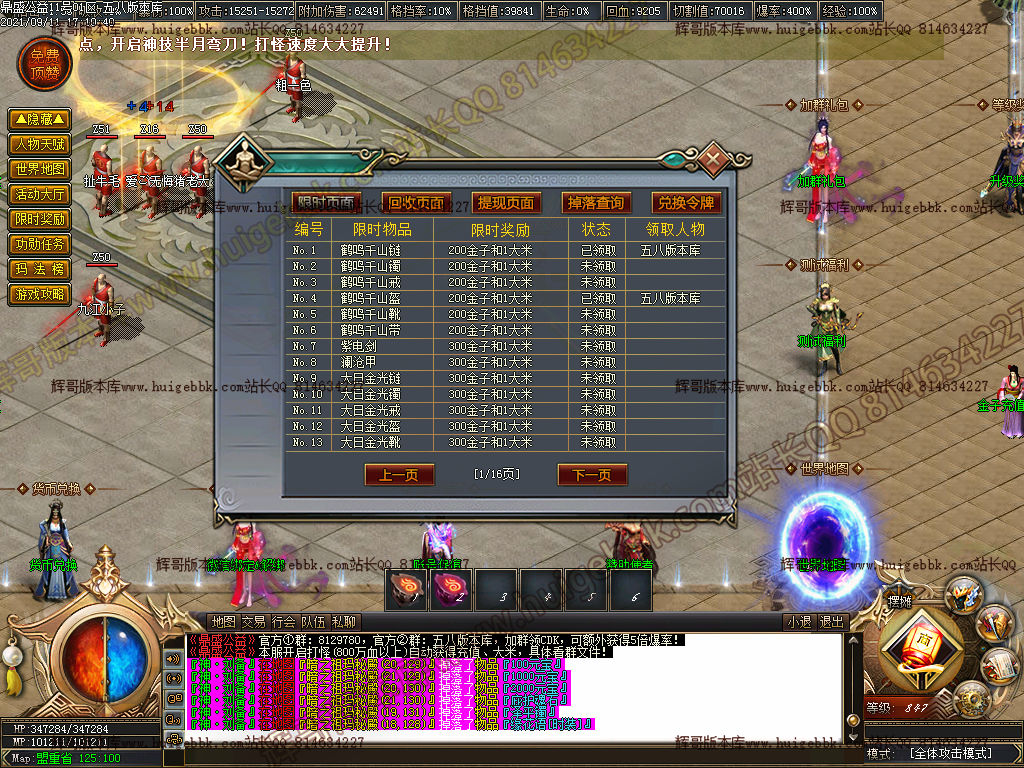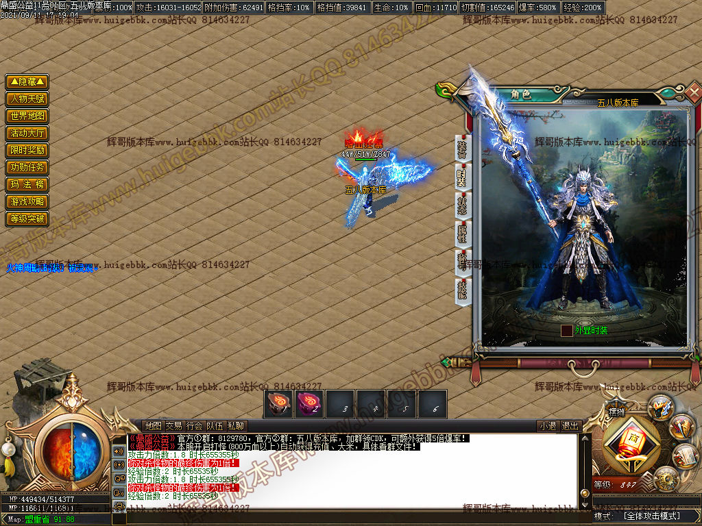 【狂暴系统】: 本服狂暴10R=100大米 永久赠送 切割值+1000 怪物爆率+10% 死亡不小时 开启属性 切割值+5000 怪物爆率+30% 打怪伤害+10%生命值+3000 基础攻击+150 全米素+5% 死亡消失 击杀者可获得50大米